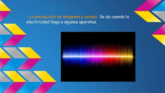 - 12. - La producción de imágenes y sonido: Se da cuando la electricidad llega a algunos aparatos.