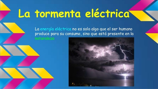 - 13. La tormenta eléctrica La energía eléctrica no es solo algo que el ser humano produce para su consumo, sino que está presente en la naturaleza